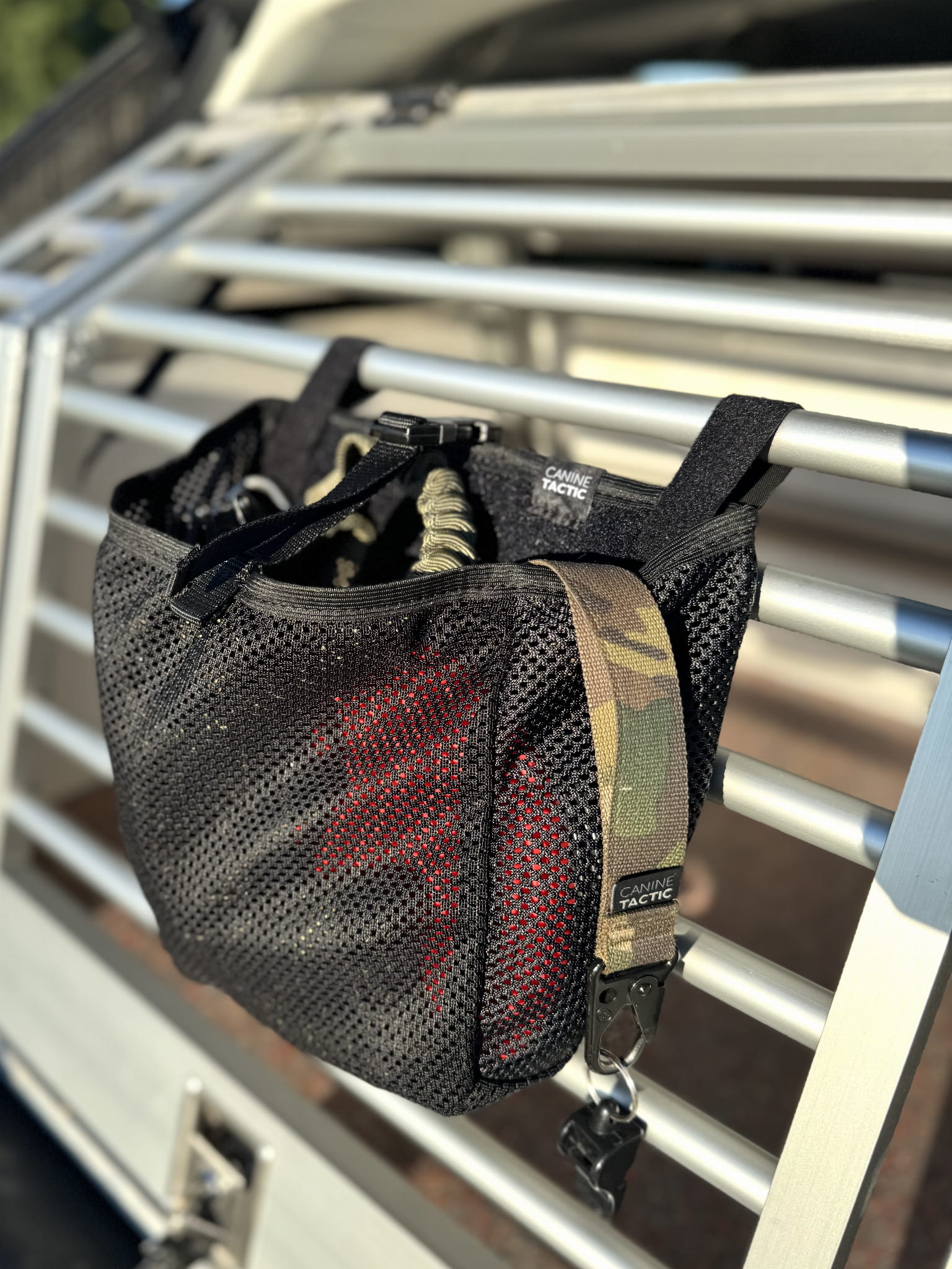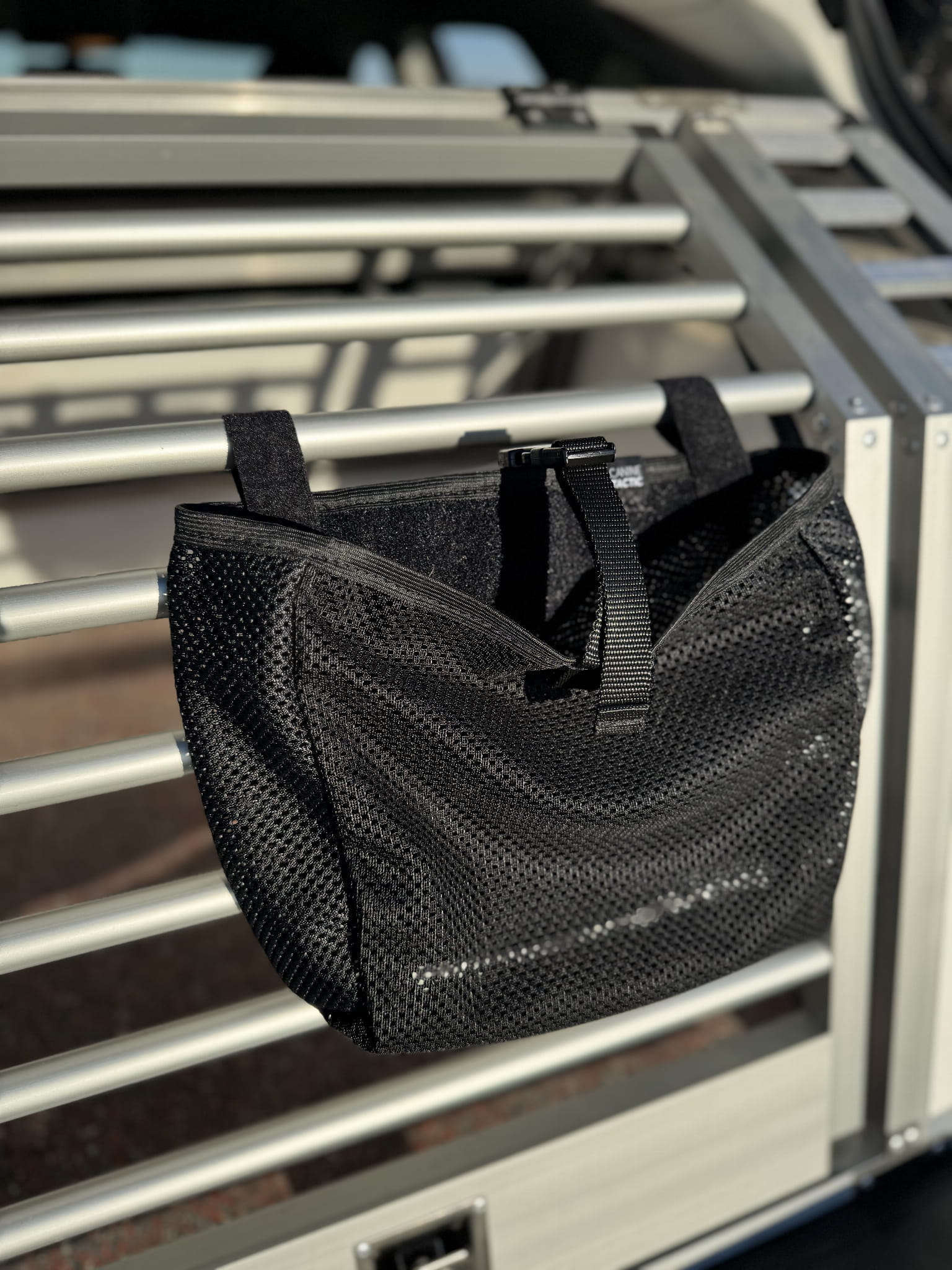 Praktyczna torba organizacyjna zaprojektowana do mocowania na klatce kennelowej / transporterze dla psa. Dzięki uchwytom rzepowym umożliwia szybki montaż oraz wygodny dostęp do zawartości. Od teraz wszystkie niezbędne akcesoria Twojego psa masz zawsze pod ręką.